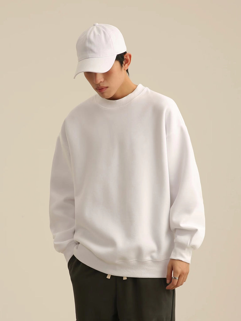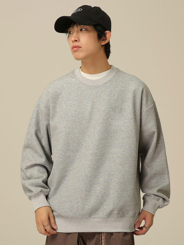 Men Sweatshirts Solid Color round Neck Sweater Japanese Style Thin Loose