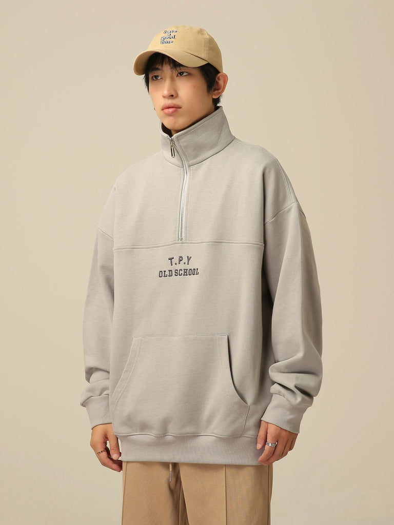 Men Sweatshirts Polo Shirt Sweater Half Zipper Retro Loose