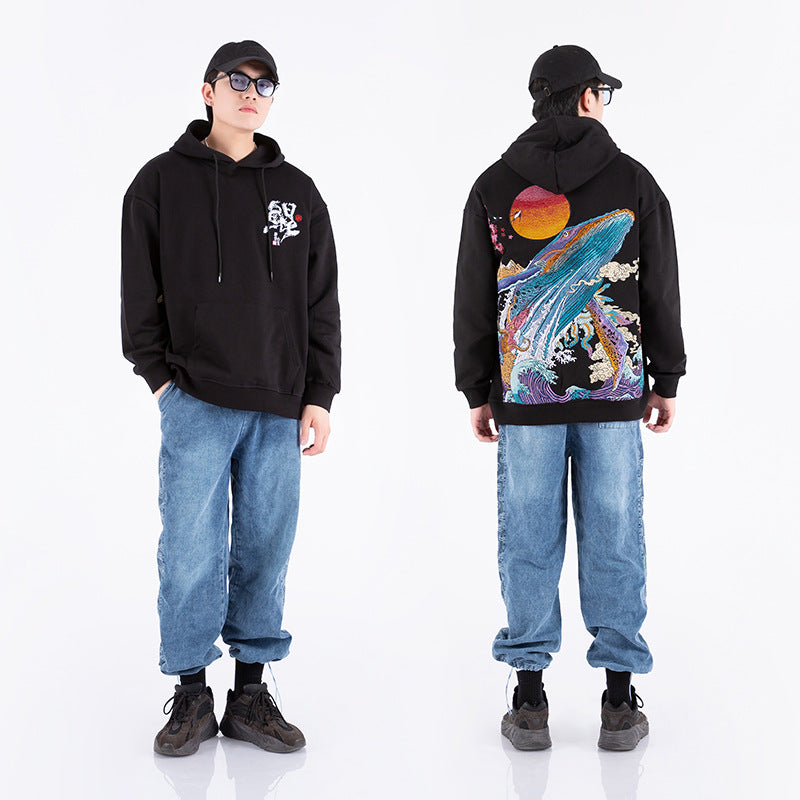 Men Hoodie Shark Embroidered Hooded Men's Sweater