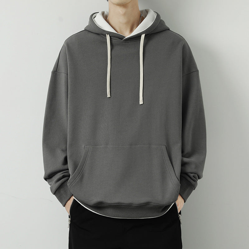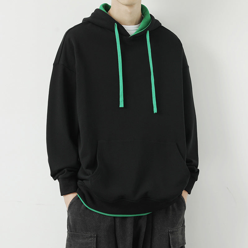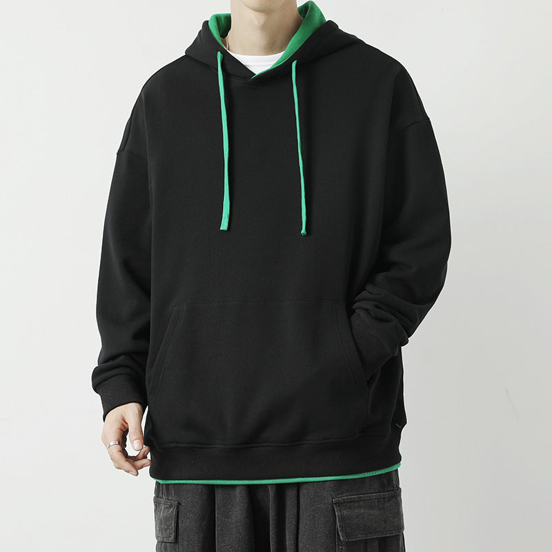 Men Hoodie Fake Two-Piece Hooded Sweater Spring and Autumn Heavy Japanese Style