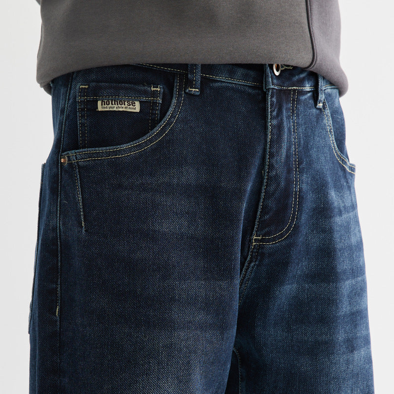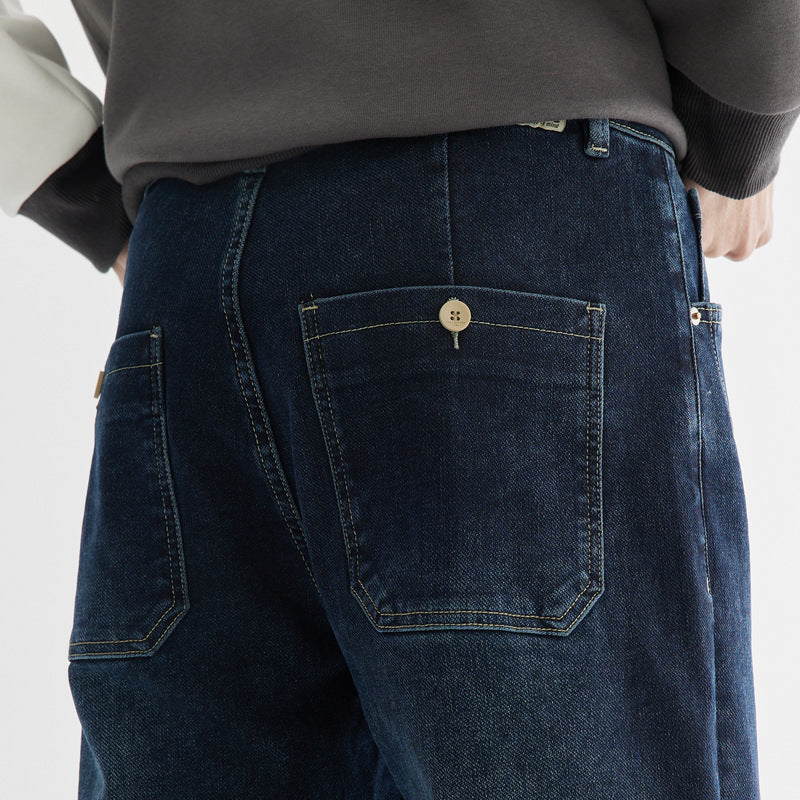 Men Jeans Blue Straight Jeans Men's All-Match Slightly Loose
