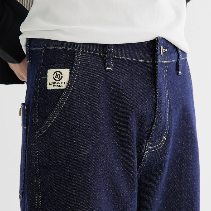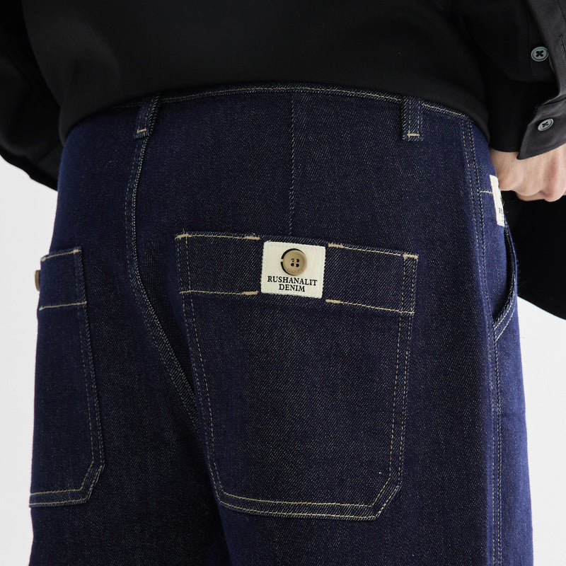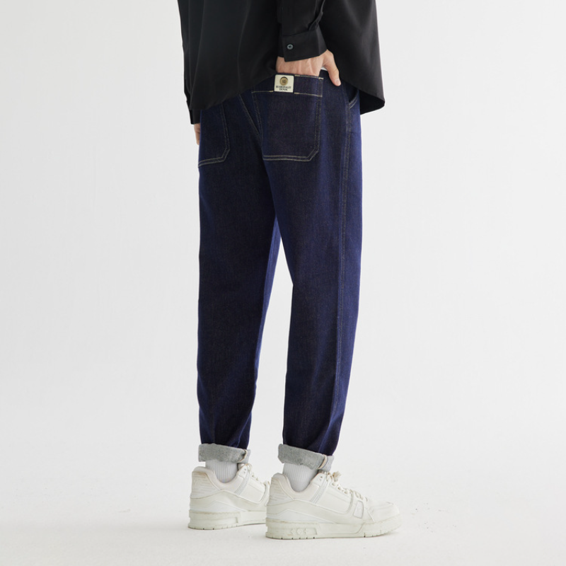 Men Jeans Dark Blue Straight Jeans All-Match Casual