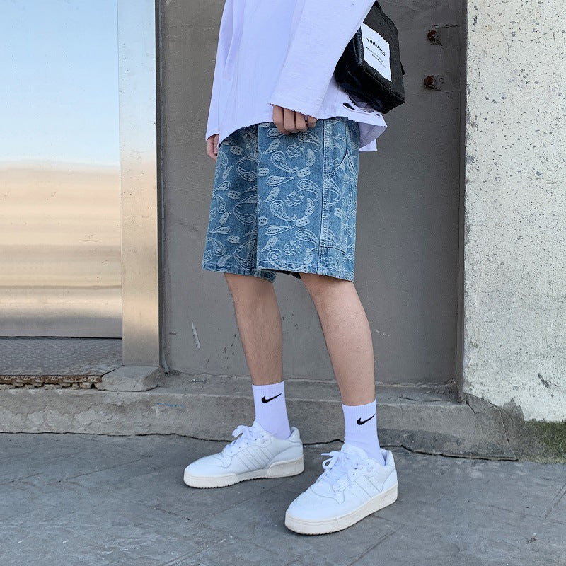 Men Denim Shorts Summer Baggy Denim Shorts Male Student