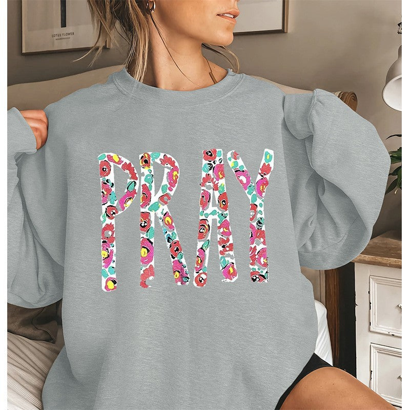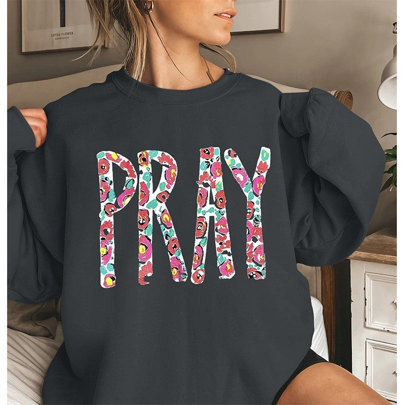 Merry and Bright Sweatshirts round Neck Long Sleeve Sweater Dazzling Color Letters Printed