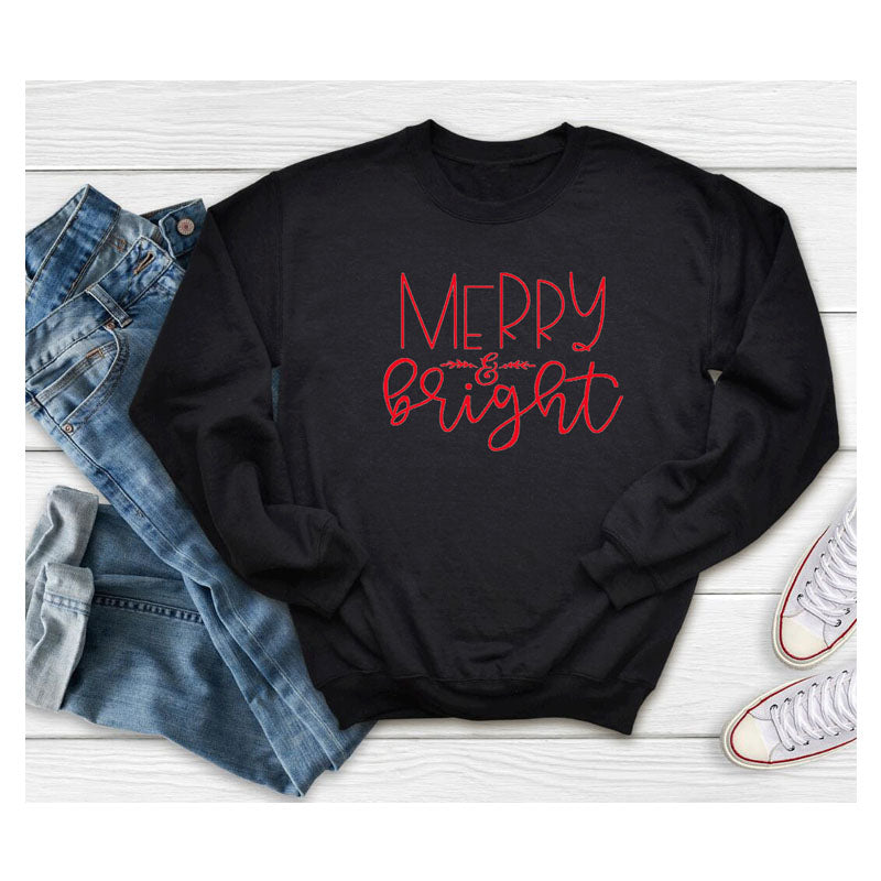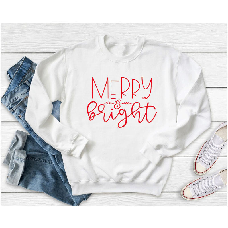 Merry and Bright Sweatshirts Crew Neck Sweater Merry and Bright