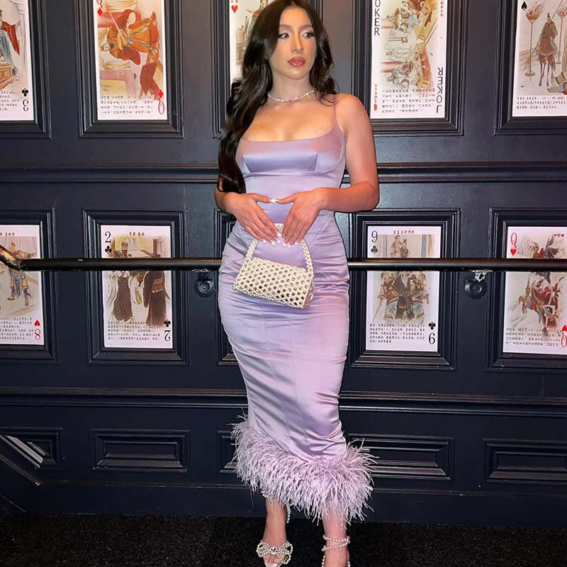 Taffeta Dress Temperament Camisole Long Dress Solid Color Satin Dress