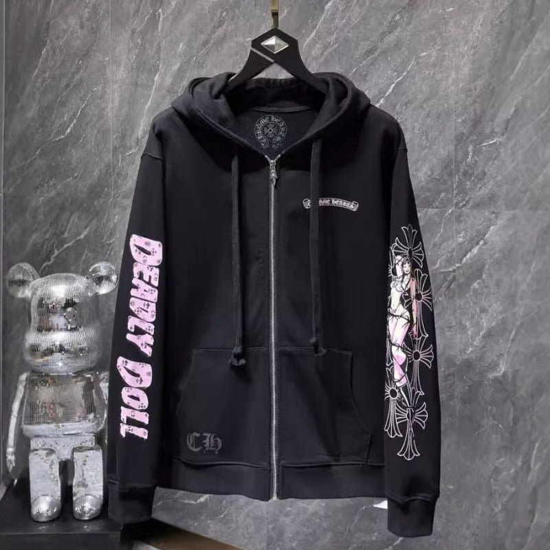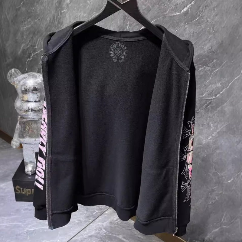 Chh Chrome Hearts Hoodie Sanskrit Letter Print Miami Zip Jacket Sweater