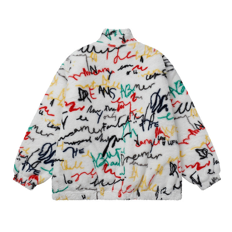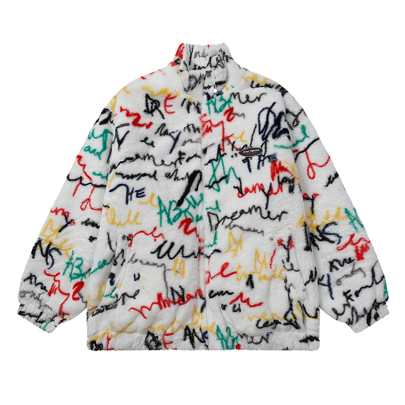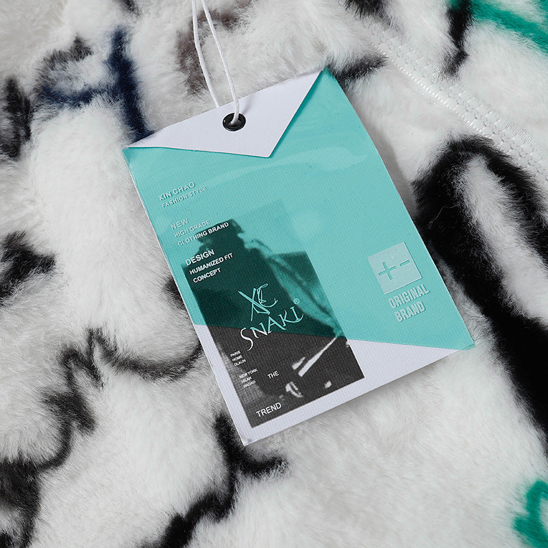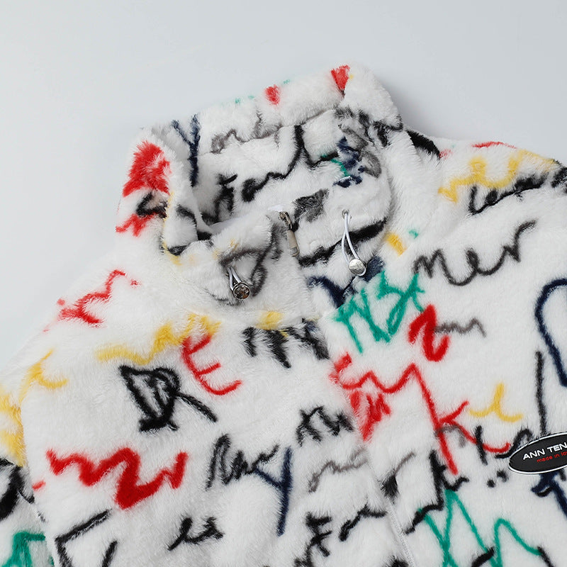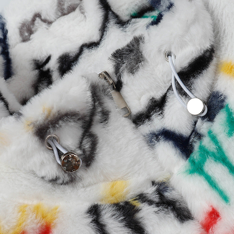 Cardigan Baseball Jacket Autumn and Winter Imitation Rabbit Fur plus Cotton Cotton Coat Jacket