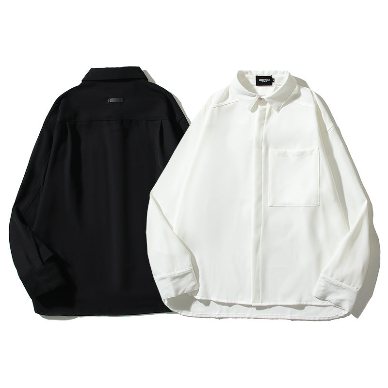Cardigan Baseball Jacket Long Sleeve Loose White Shirt Men's and Women's Solid Color Coat