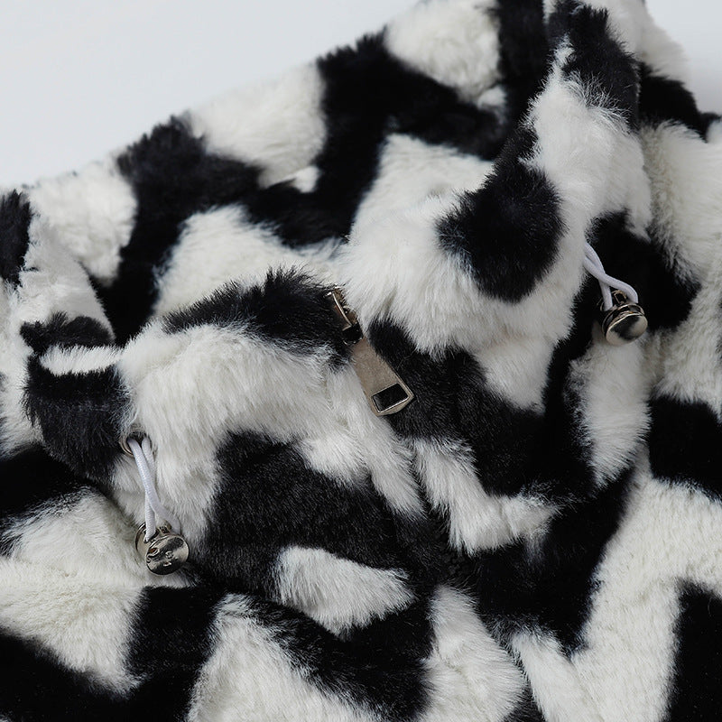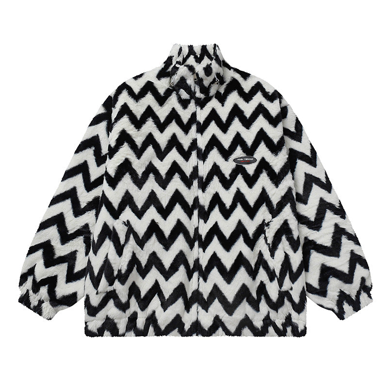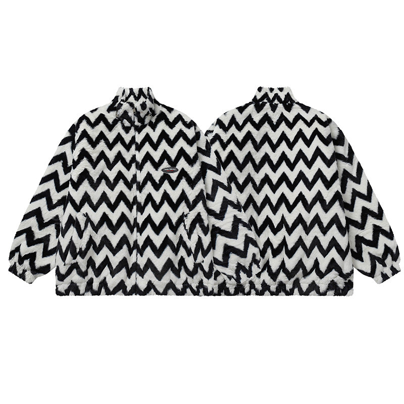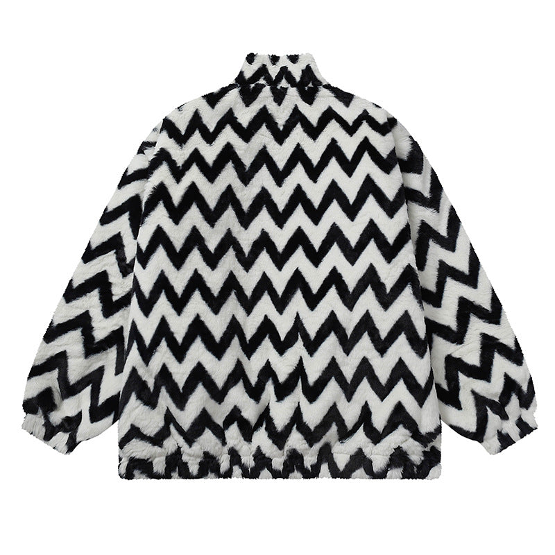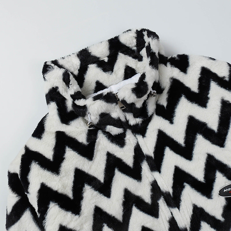 Cardigan Baseball Jacket Corrugated Imitation Rabbit Fur Loose Stand Collar Coat