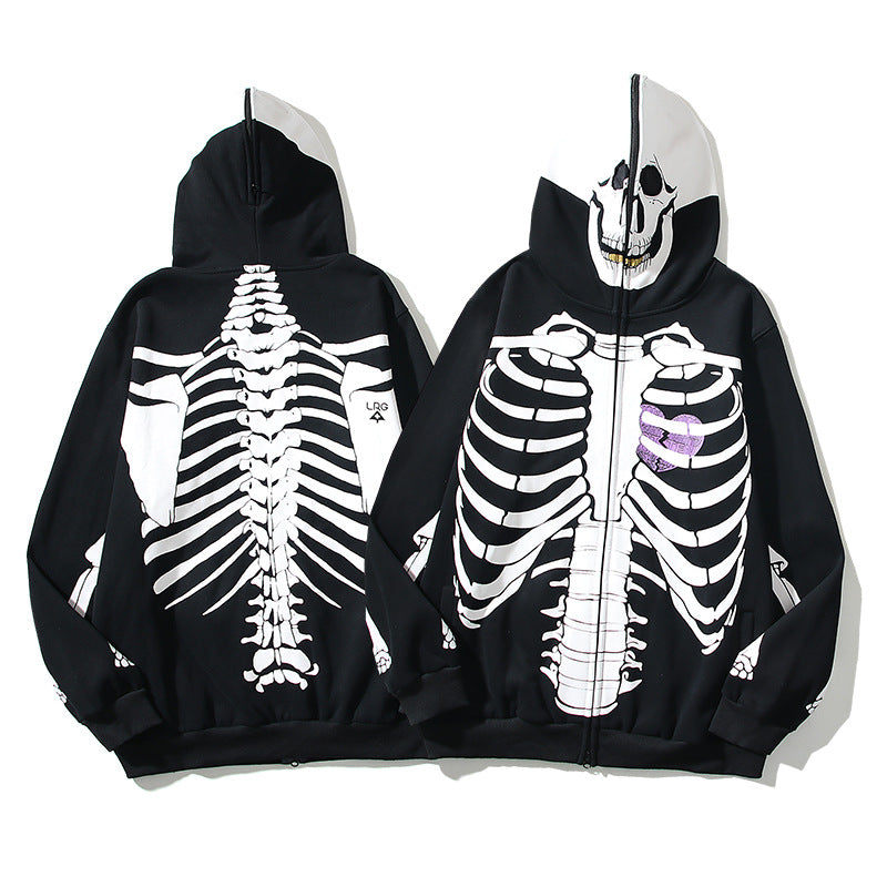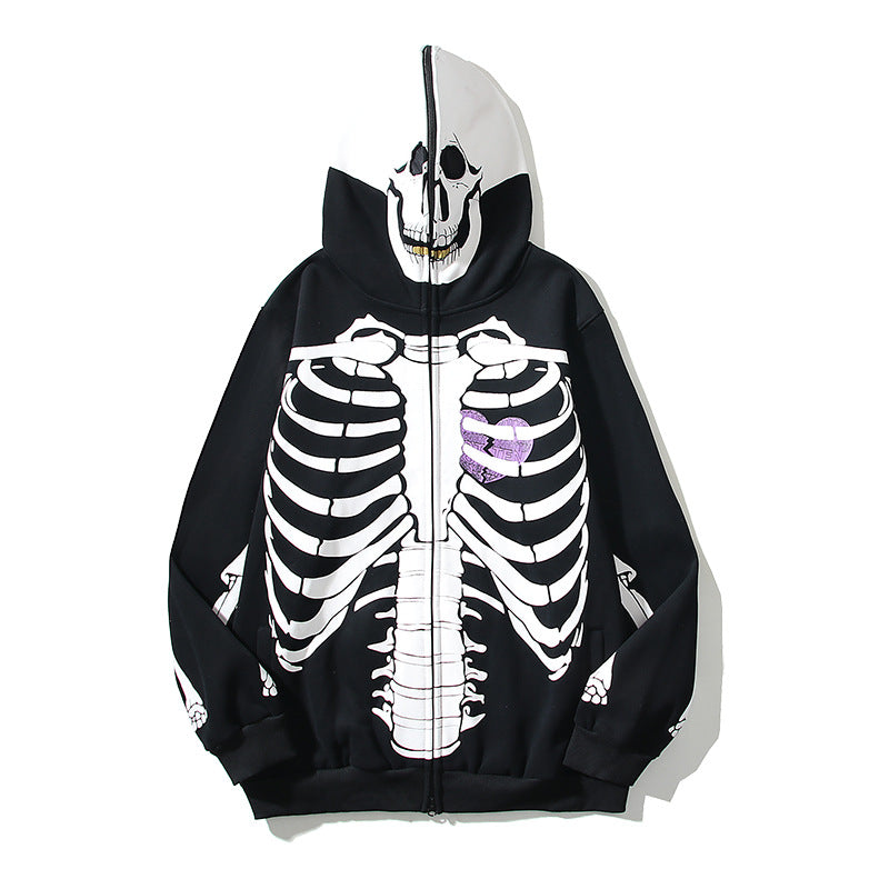 Cardigan Baseball Jacket Skull Bone Print Cardigan Hoodie Coat