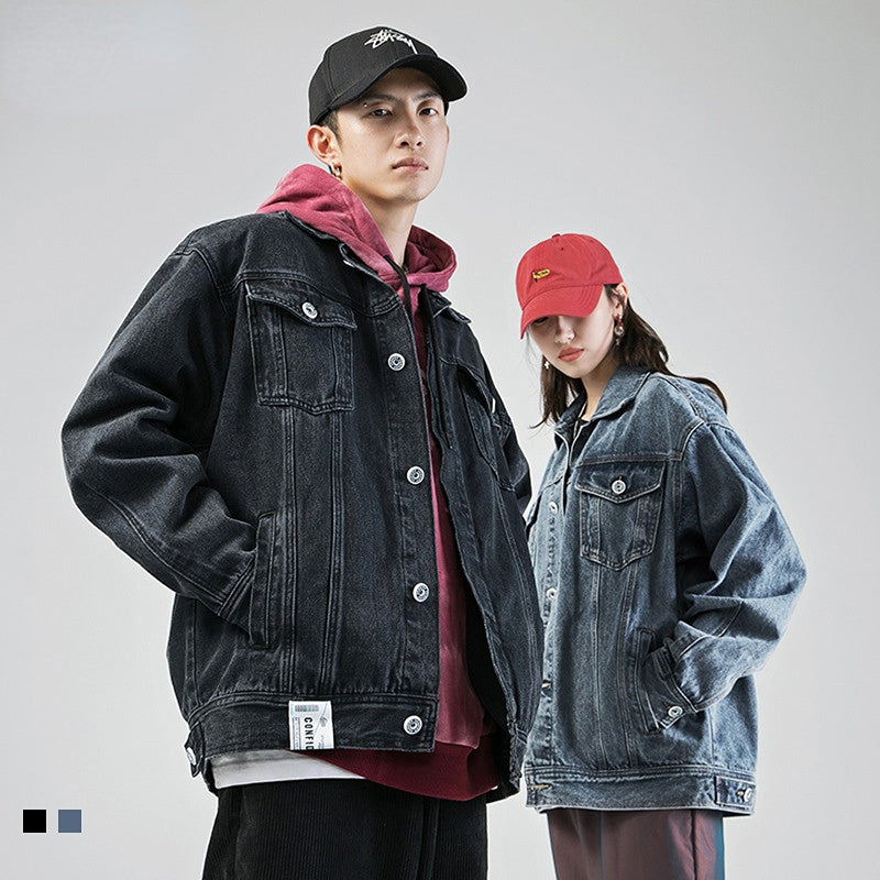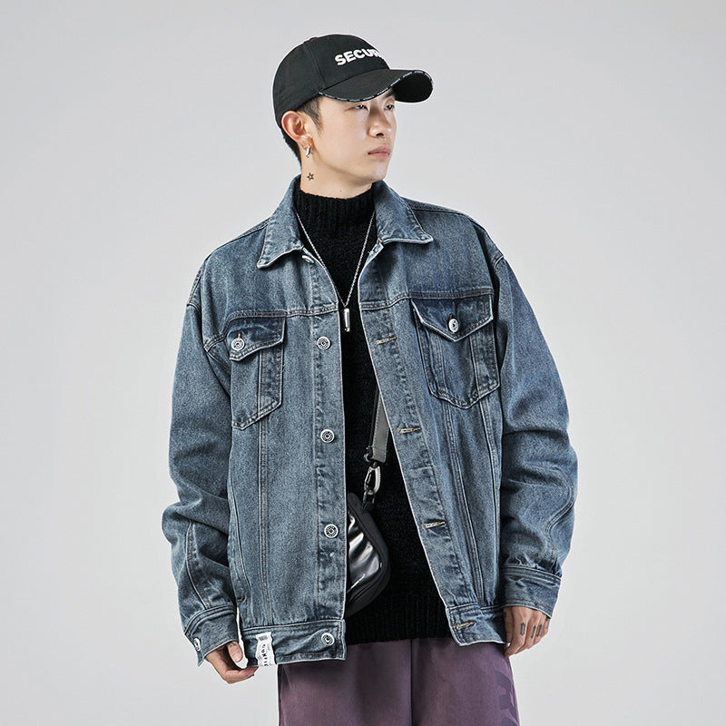 Men Denim Jackets Vintage Loose Lapels Casual Jacket
