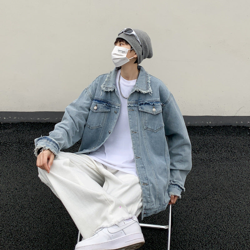 Men Denim Jackets Denim Jacket Coat Men's Spring All-Matching Lapel Cardigan