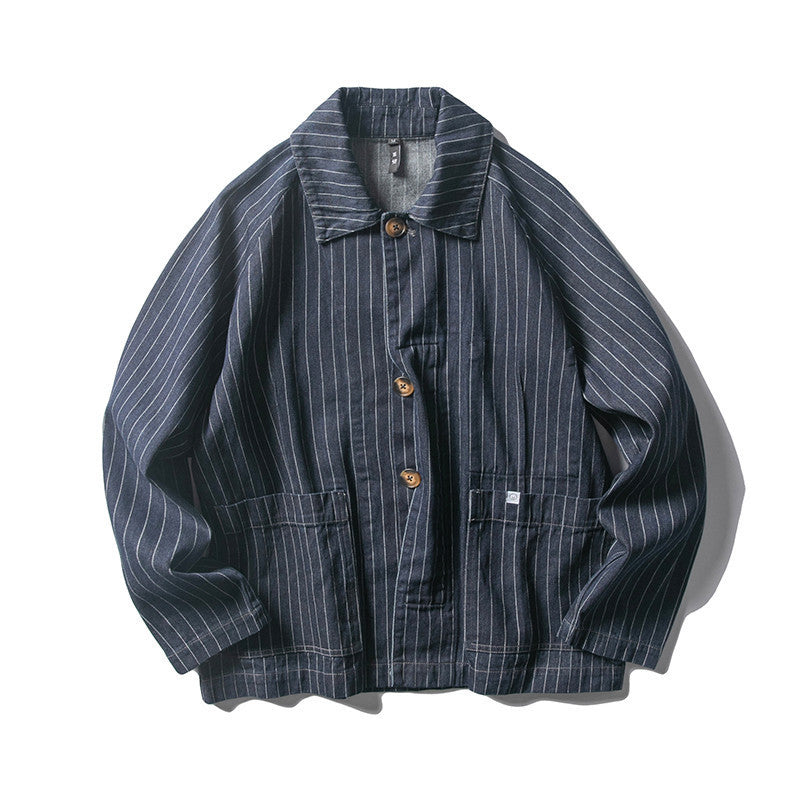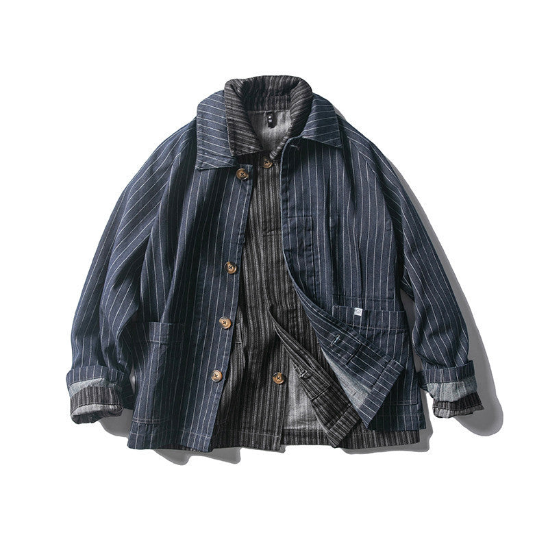 Men Denim Jackets Casual Vertical Stripes Loose Youth Denim