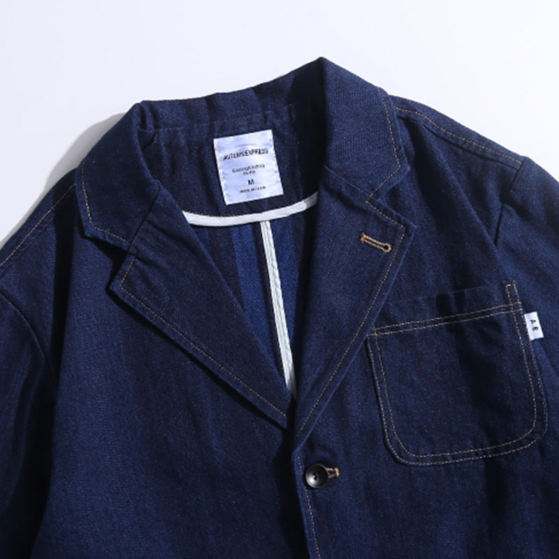Men Denim Jackets Color Stripes Denim Vintage Blazer