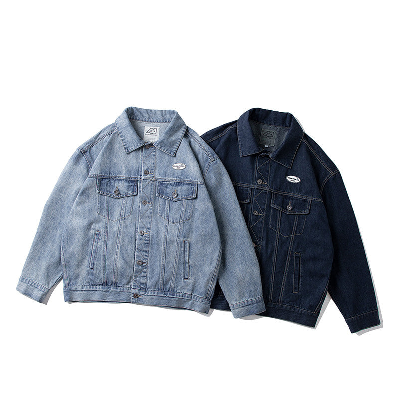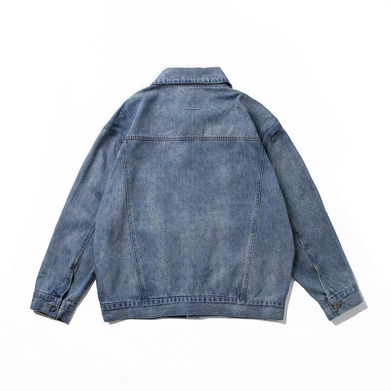 Men Denim Jackets Casual Retro Washed Drop-Shoulder Denim Jacket