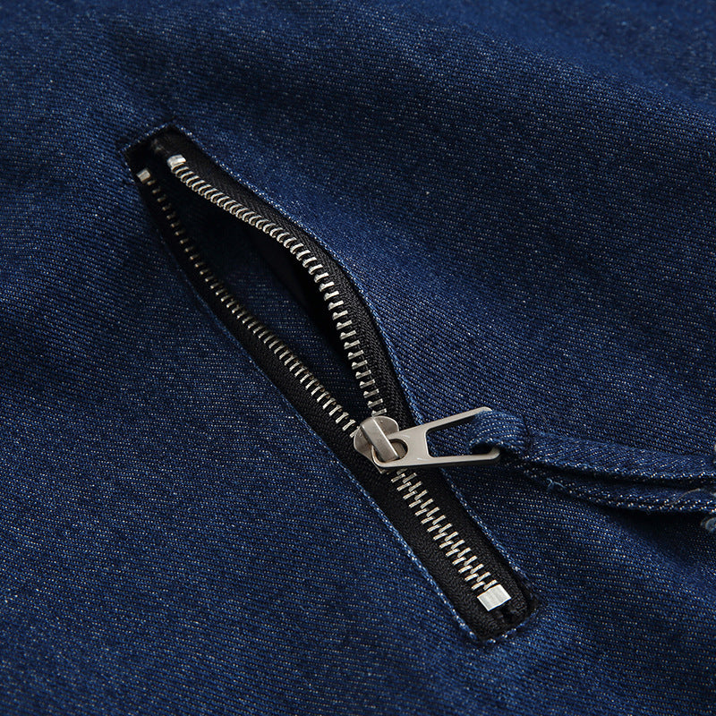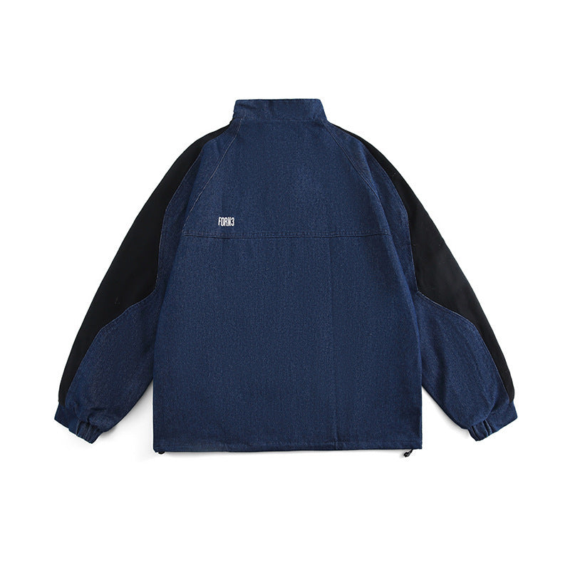Men Denim Jackets Color Stitching Stand-Collar Denim Jacket Vintage
