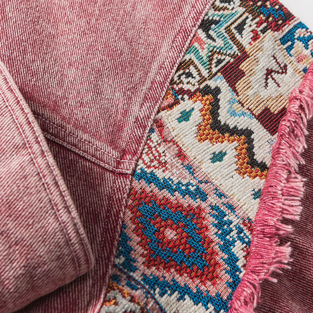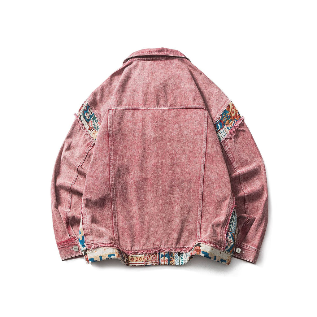 Men Denim Jackets Spring and Autumn Vintage Pink Patchwork Denim Jacket Men's Casual Jacket