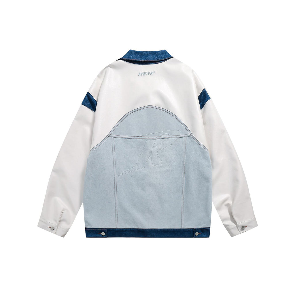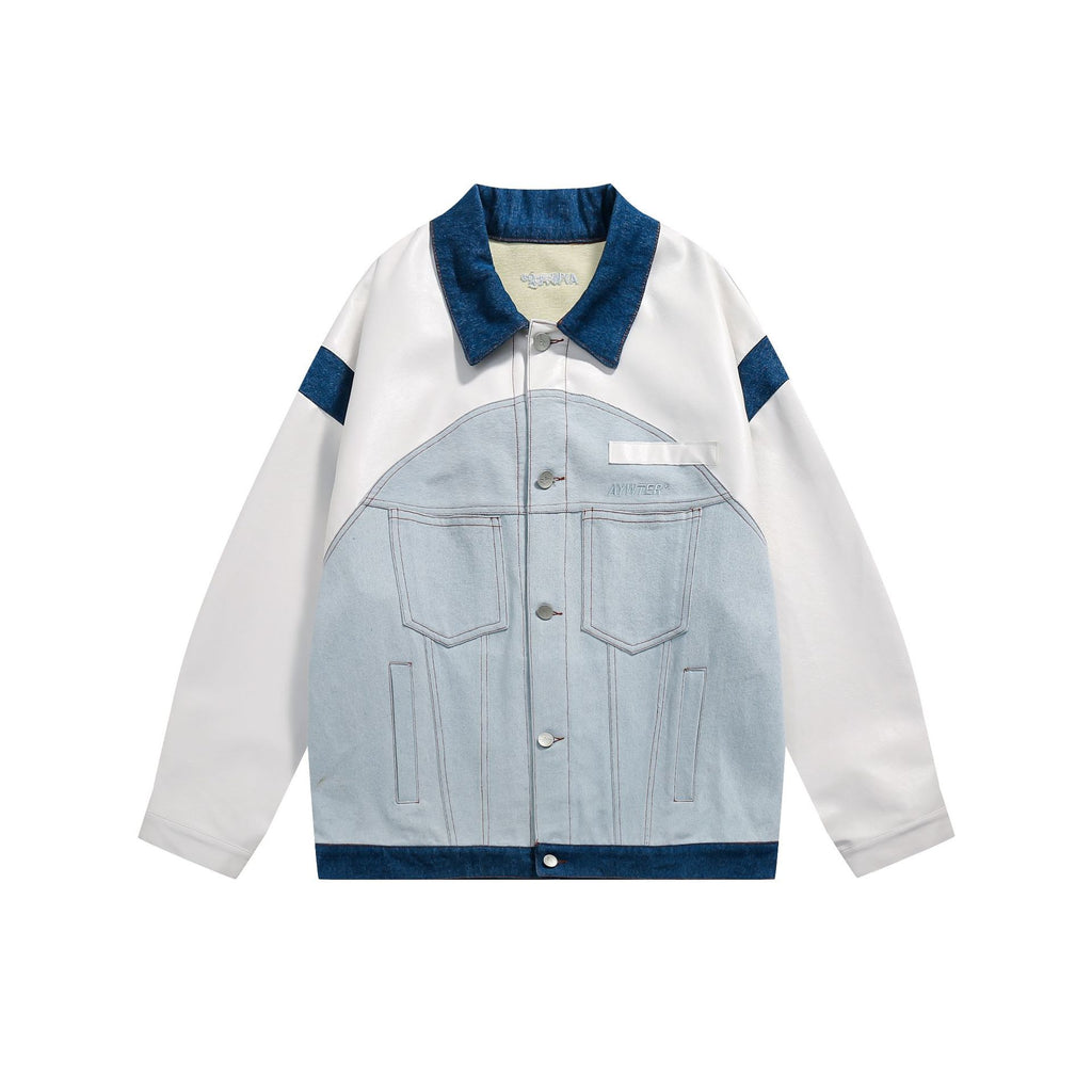 Men Denim Jackets Fall Color-Blocking Denim Jacket for Men and Women