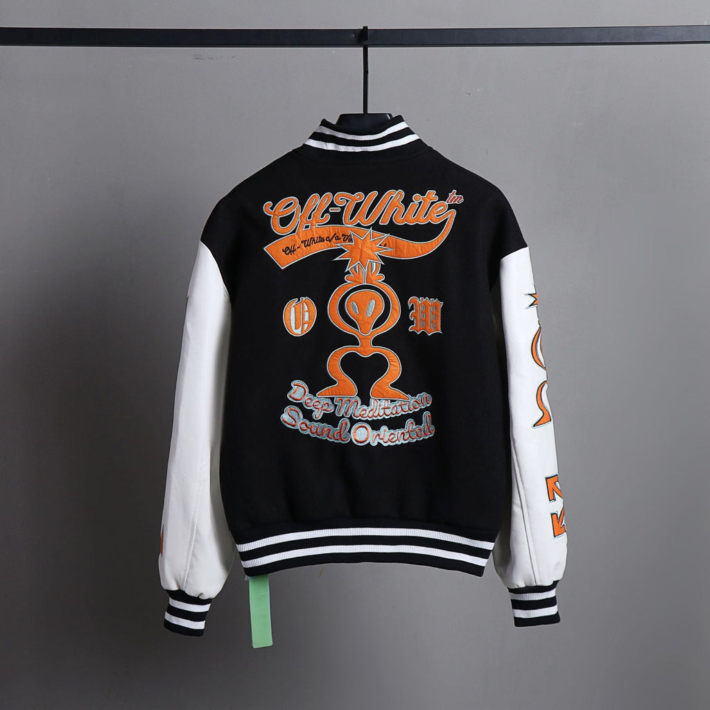 Ow Jacket Orange Embroidered Cotton-Padded Jacket for Men