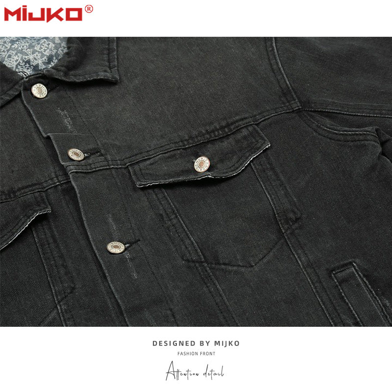 MIJKO Mens Jacket Distress Denim Jacket