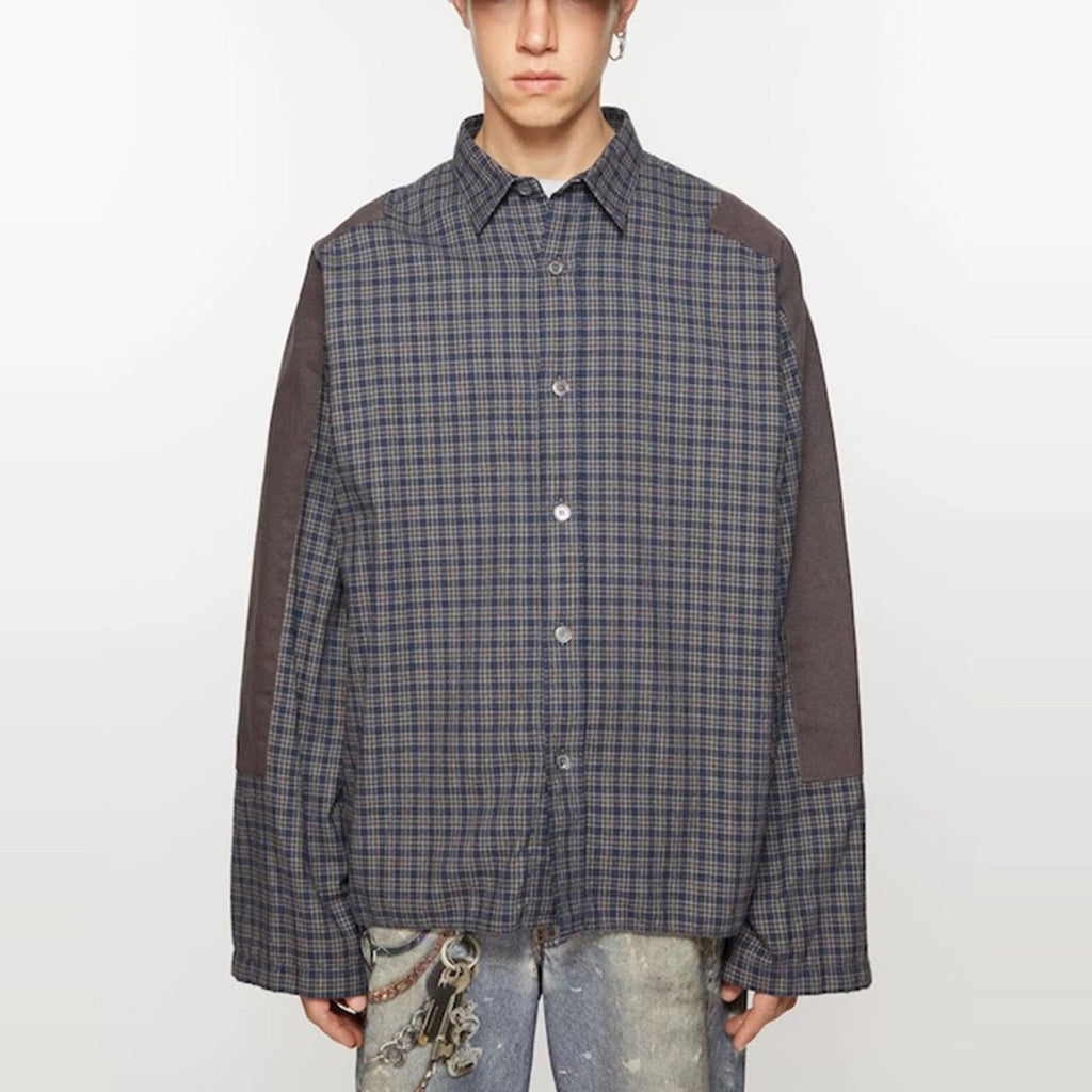 MIJKO Mens Jacket Spliced Plaid Jacket