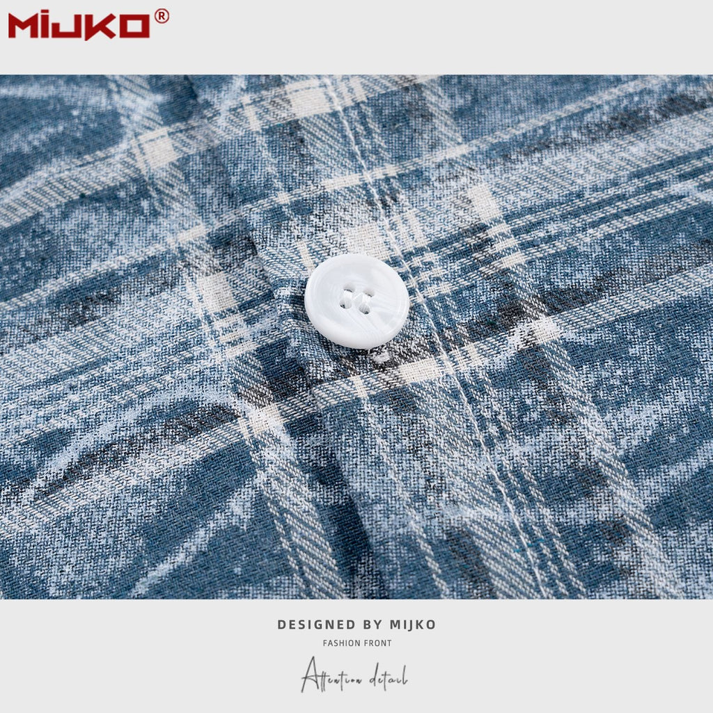 MIJKO Mens Jacket Textured Plaid Shirt Jacket