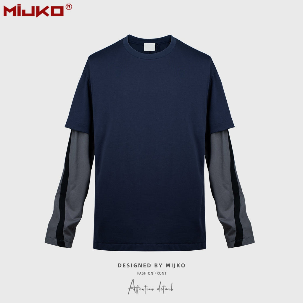 MIJKO Men Jacket Fake Two Long-sleeved Color Matching T-shirt