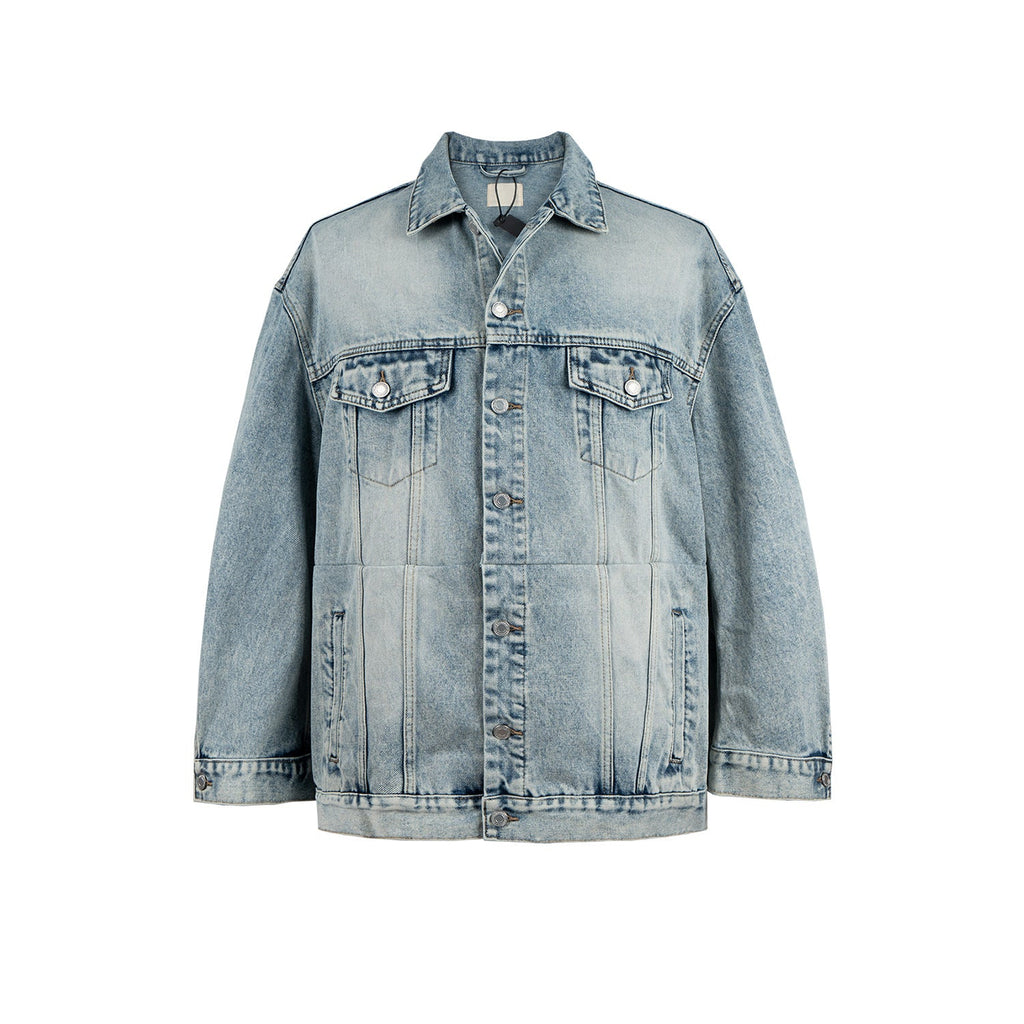 MIJKO Mens Jacket Washed Distress Denim Jacket