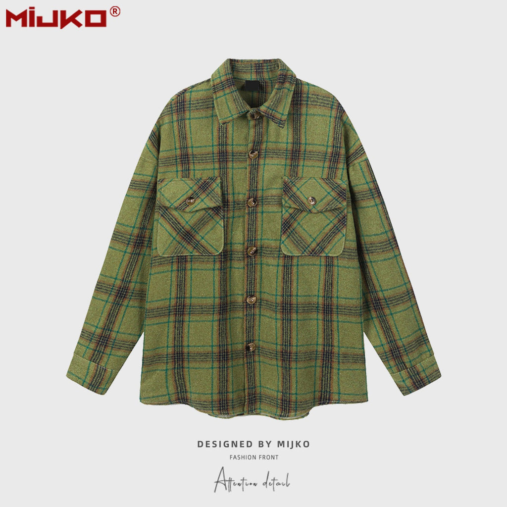 MIJKO Mens Jacket Loose Plaid Unisex Jacket