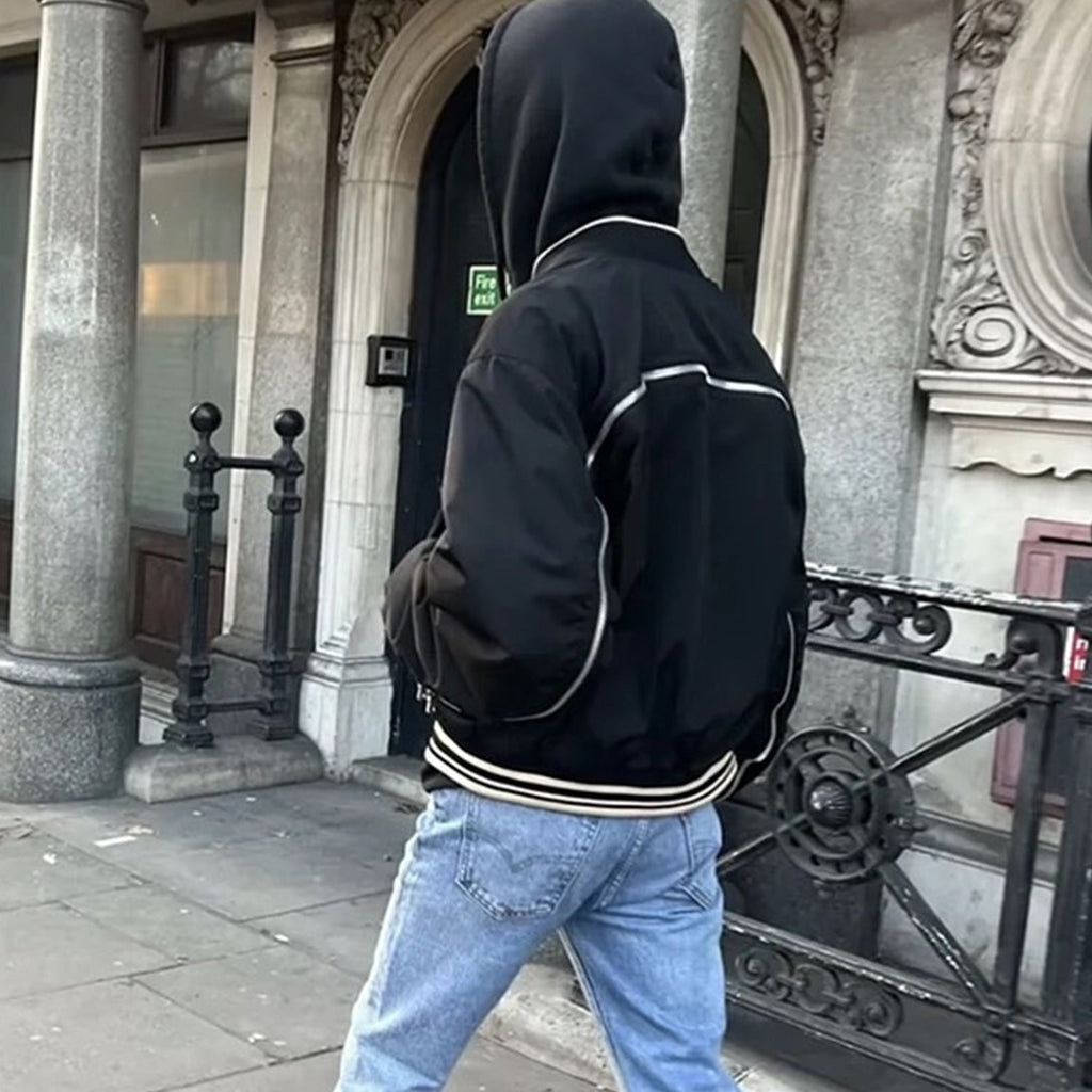 MIJKO Mens Jacket Zip Embellished Mainstream Fashion Cotton Jacket