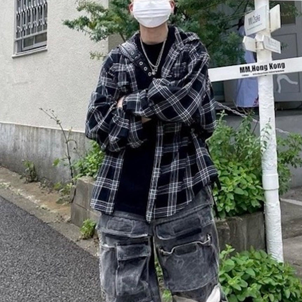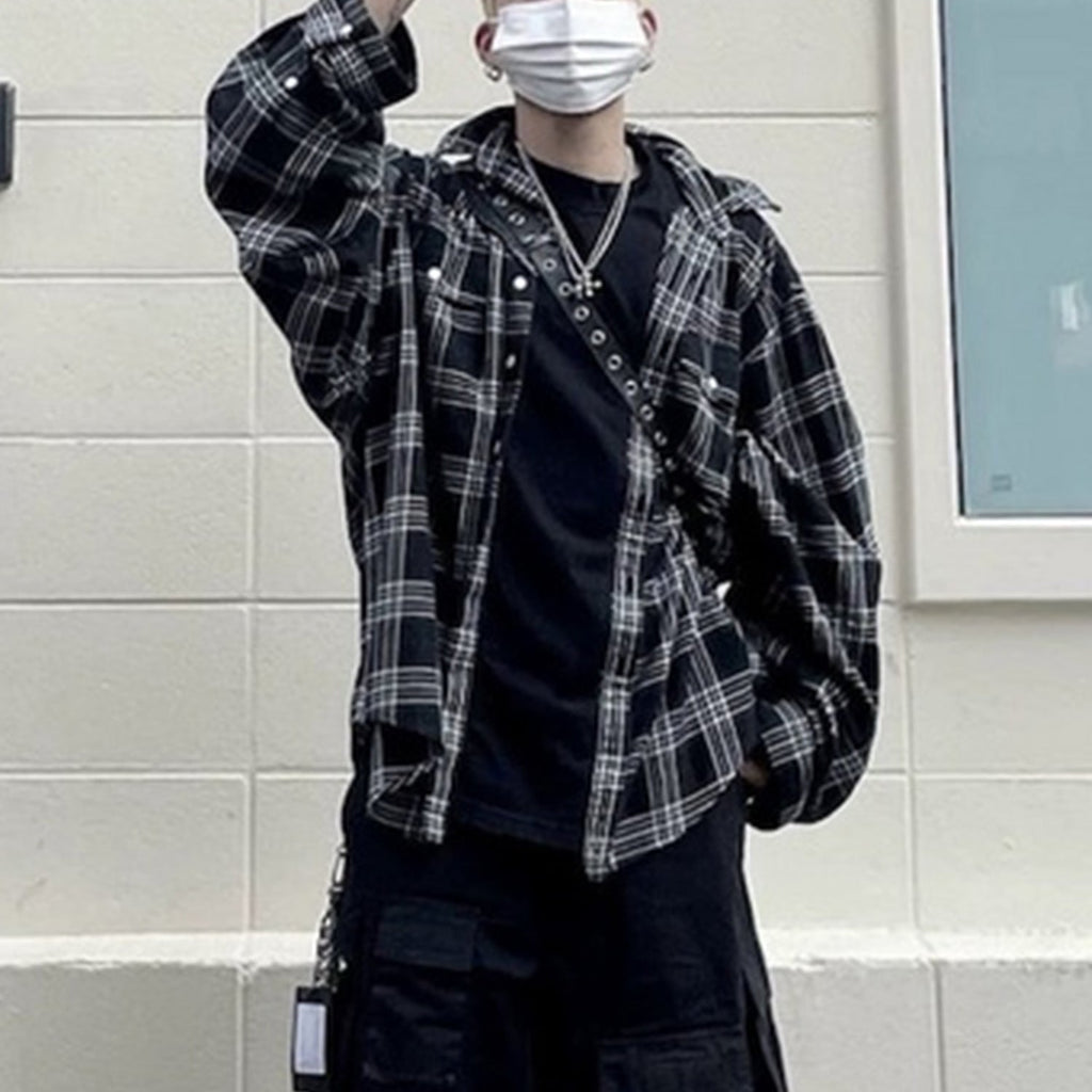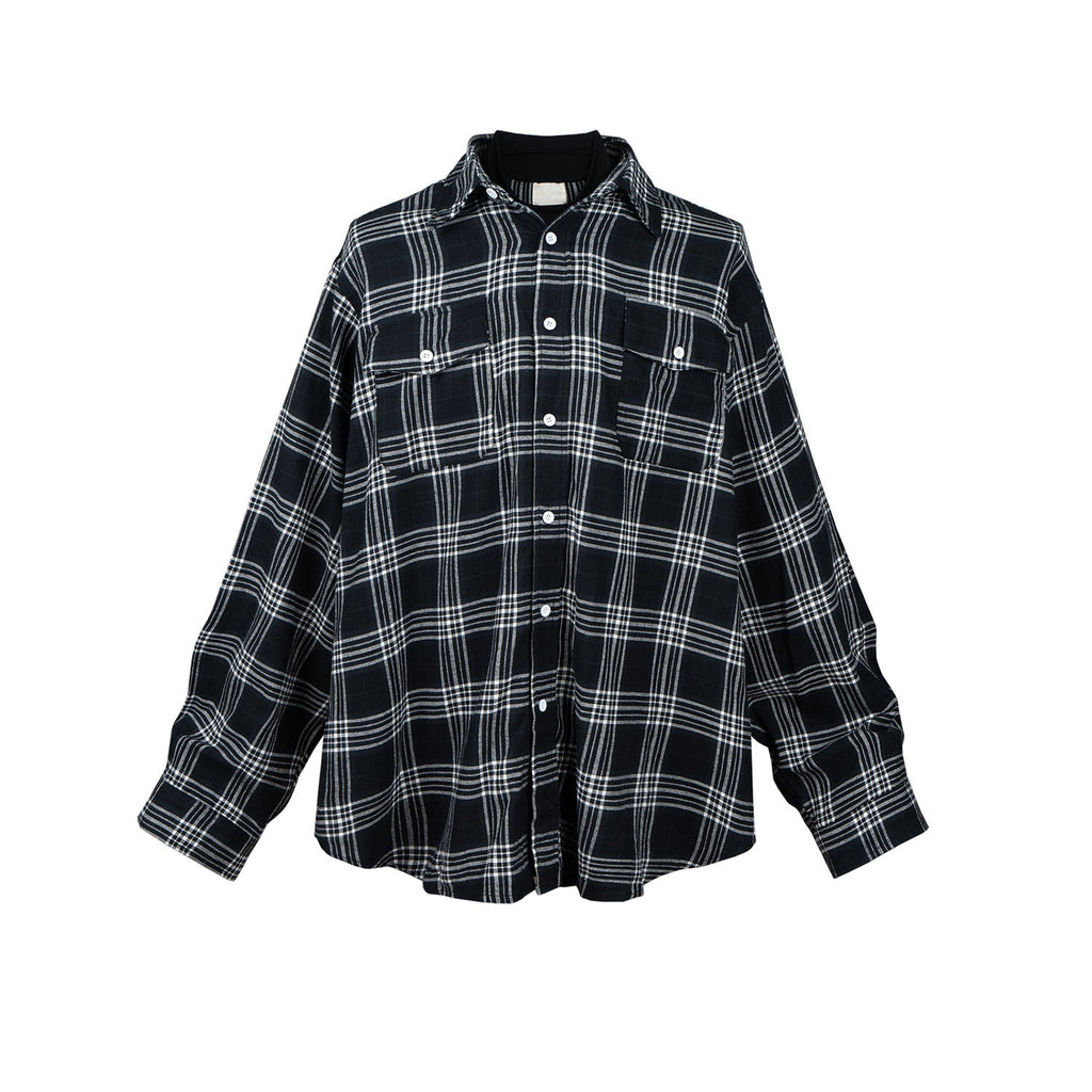 MIJKO Mens Jacket Fake Two Piece Splicing Black and White Grid Jacket