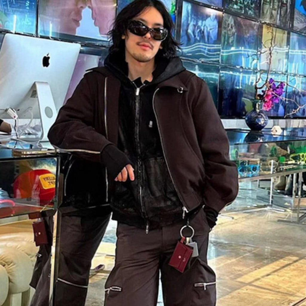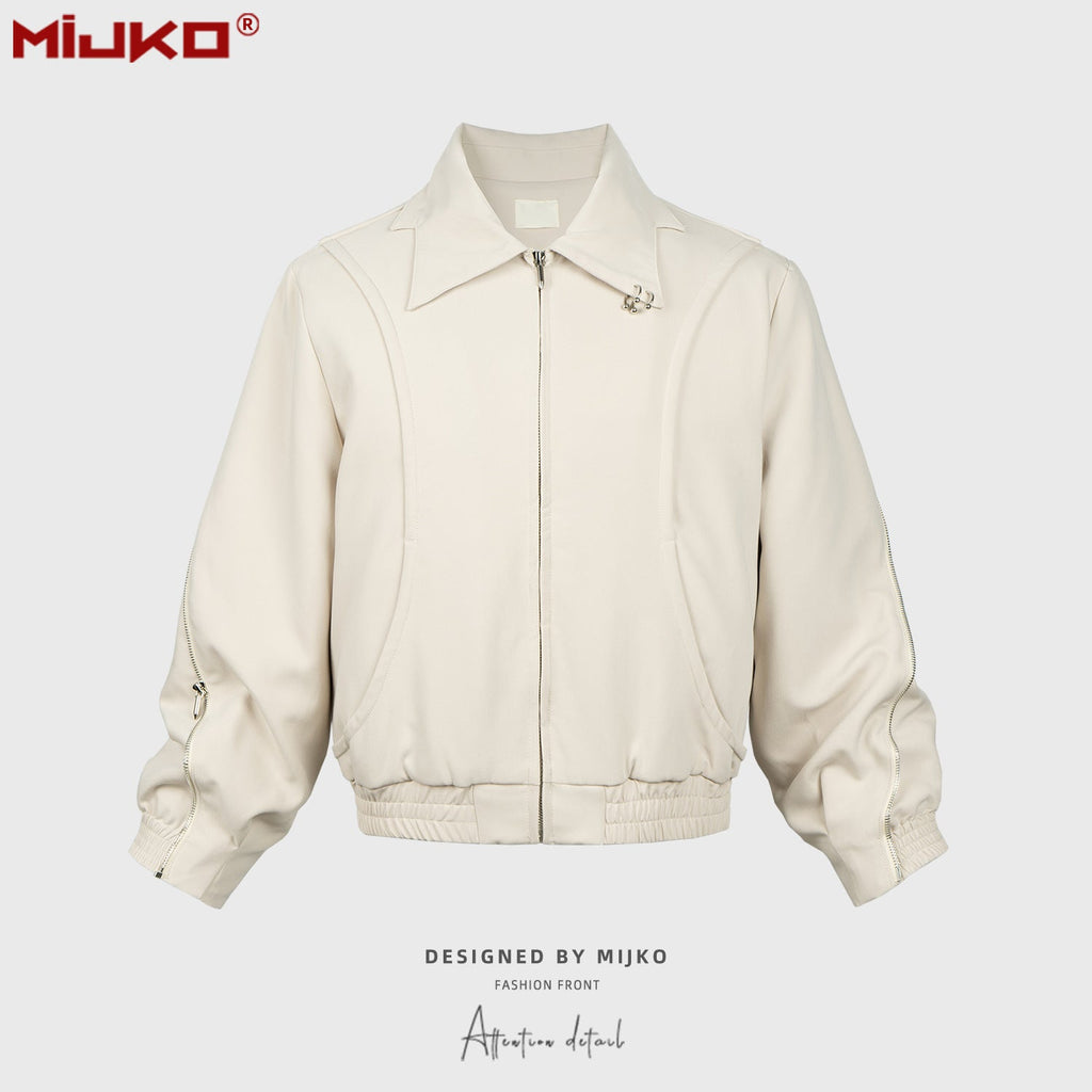 MIJKO Men's Jacket Two-way Zipper Minimalist Temperament Jacket