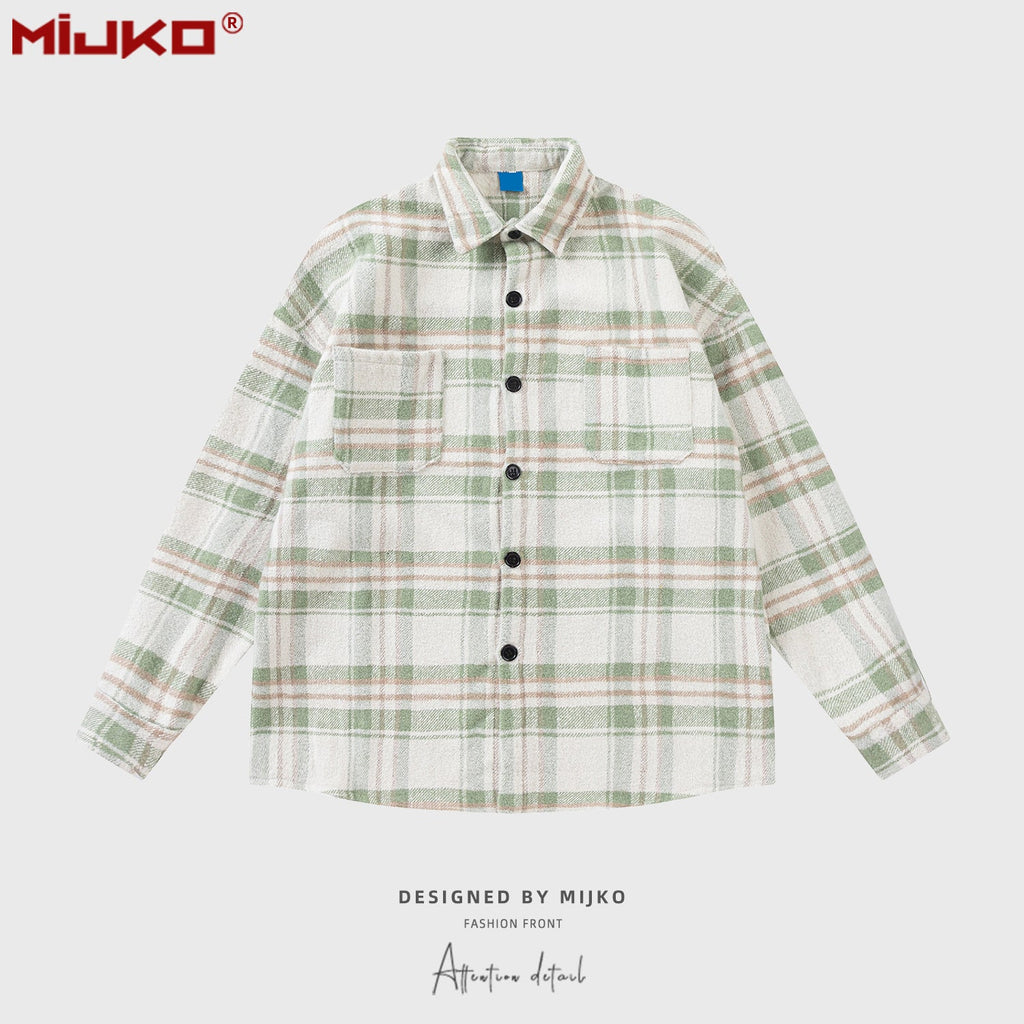 MIJKO Mens Jacket Plaid Loose Jacket Unisex