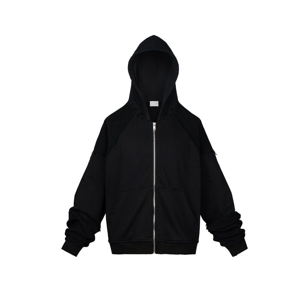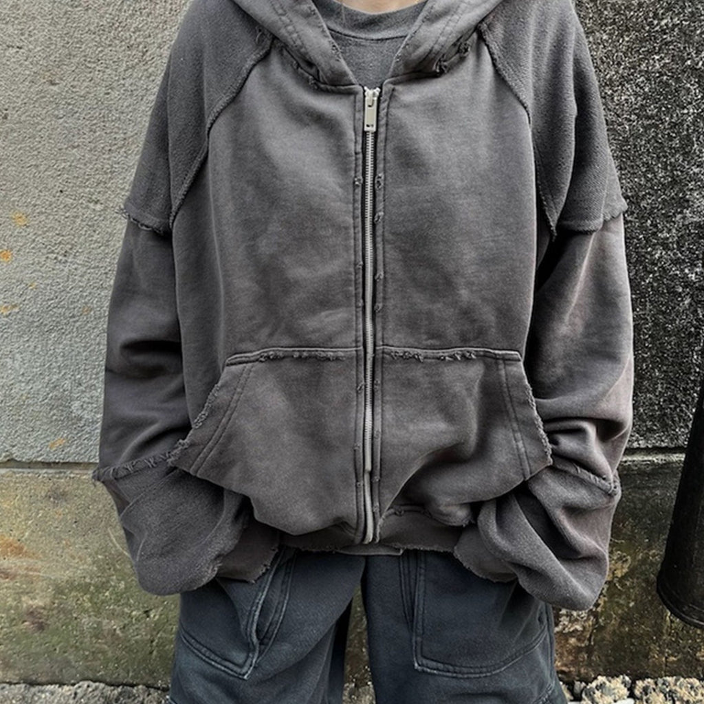 MIJKO Men's Jacket Splicing Zip Cardigan Loose Hooded Sweater