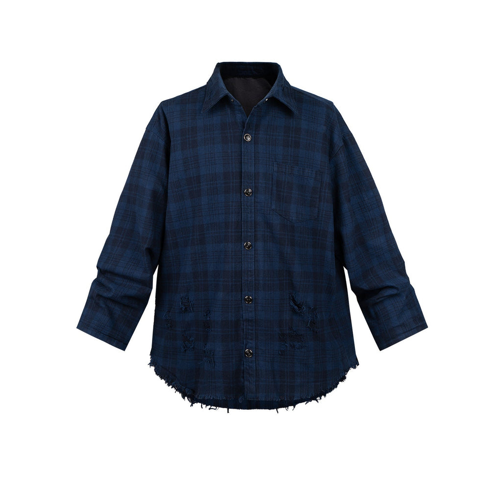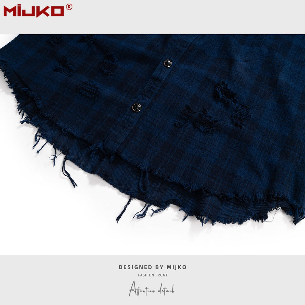 MIJKO Mens Jacket Ripped Plaid Jacket