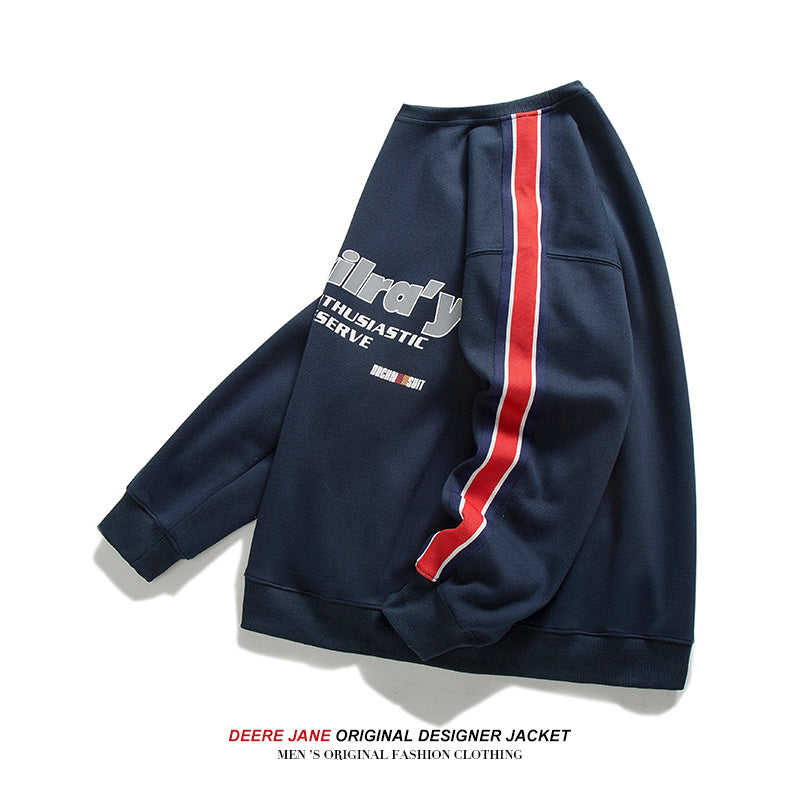 Men Pullover Hoodie Spring Color-Block Crew Neck Sweater Men's Loose All-Matching