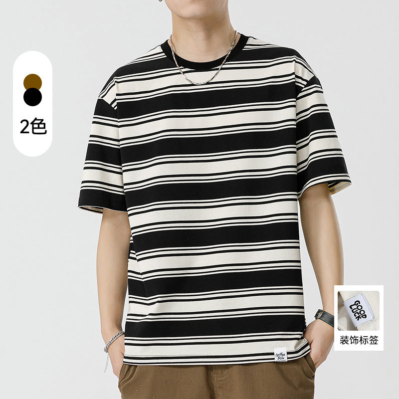 Mariner Shirt Summer Striped Short-Sleeved Shirt Versatile Simple Retro Boys round Neck T-shirt