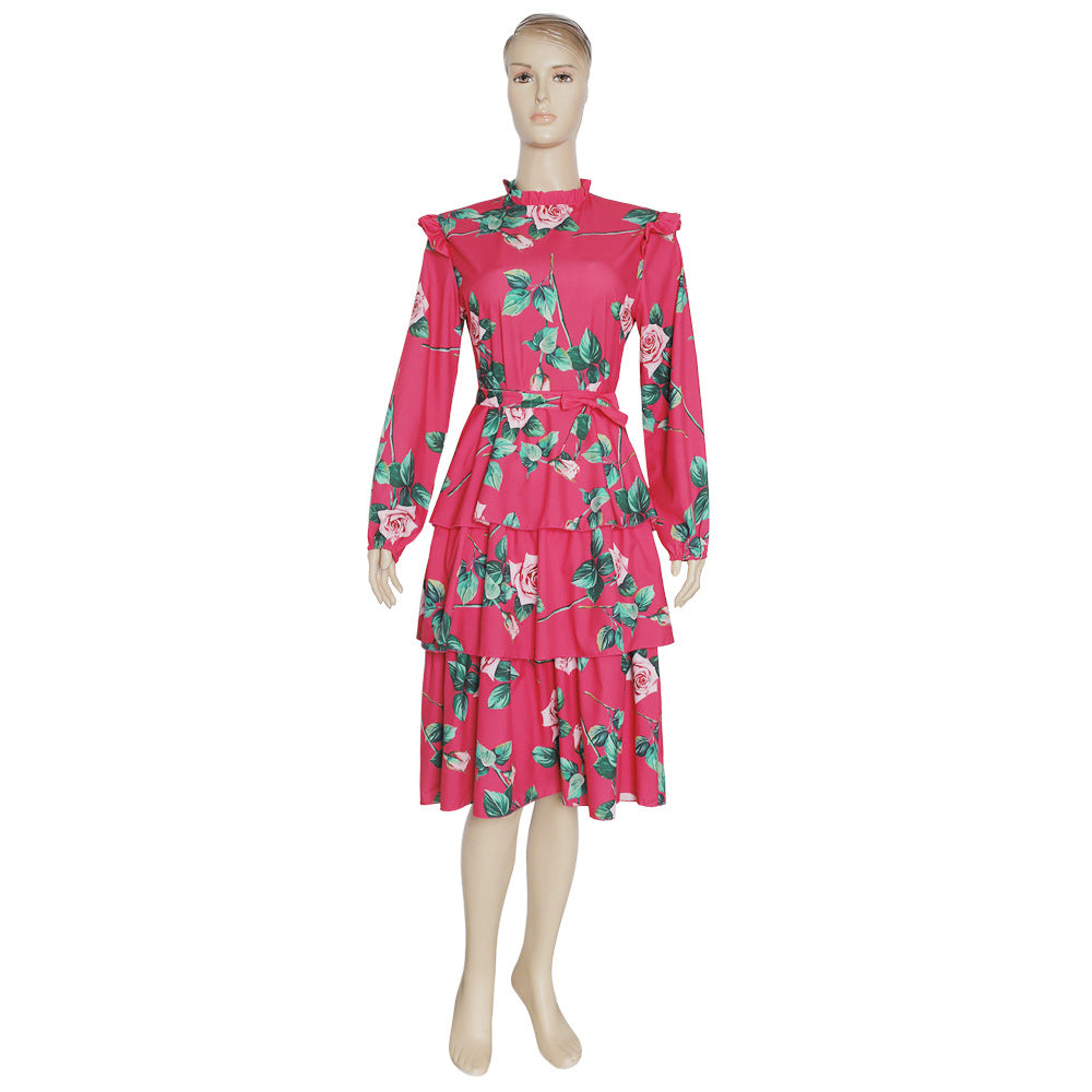 Vintage Floral Print Long Sleeves Holiday Lace-up Dress African Dashiki Ankara Styles Dress