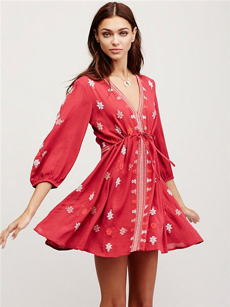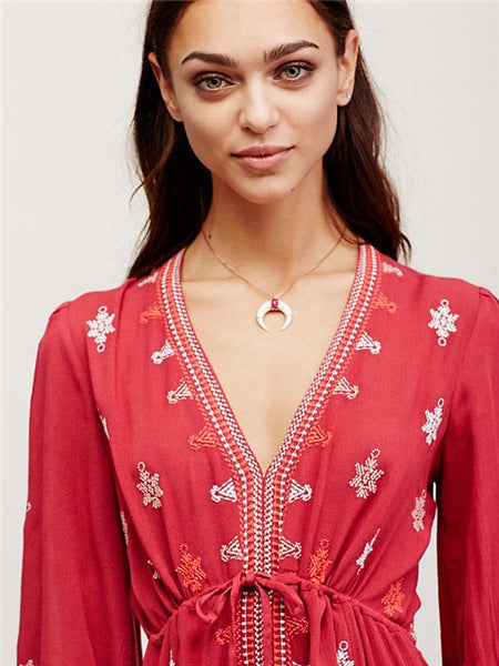 Beth Dutton Bohemian Dress Summer Spring Midi Dress Embroidered Dress