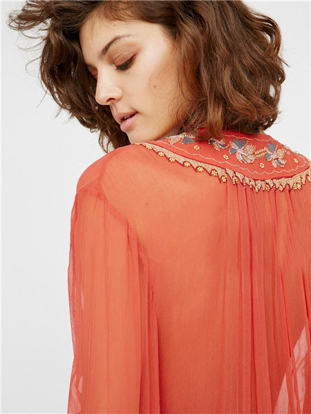 Beth Dutton Bohemian Dress Summer Spring Midi Dress See-through Beaded Embroidery Blouse