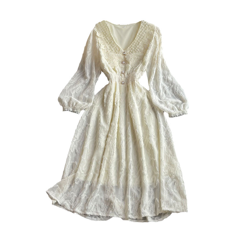Betty Draper Valentine's Day Dress Vintage Court Style Figure Flattering Wide Hem Long Dress Lace V-neck