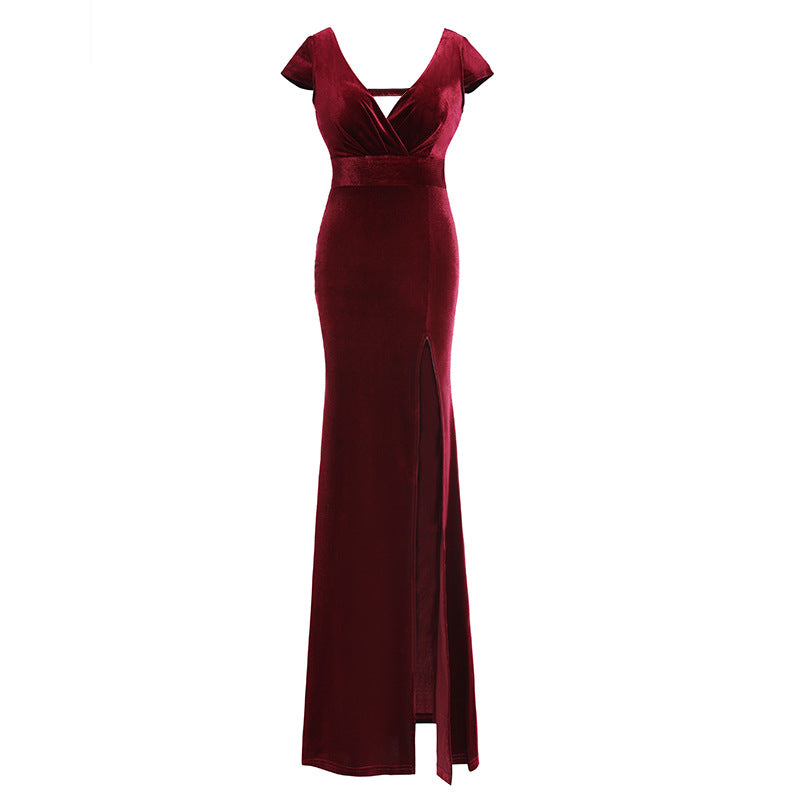 Maxi Burgundy Dress Formal Slim-Fit Elegant Princess Dress Evening Dress