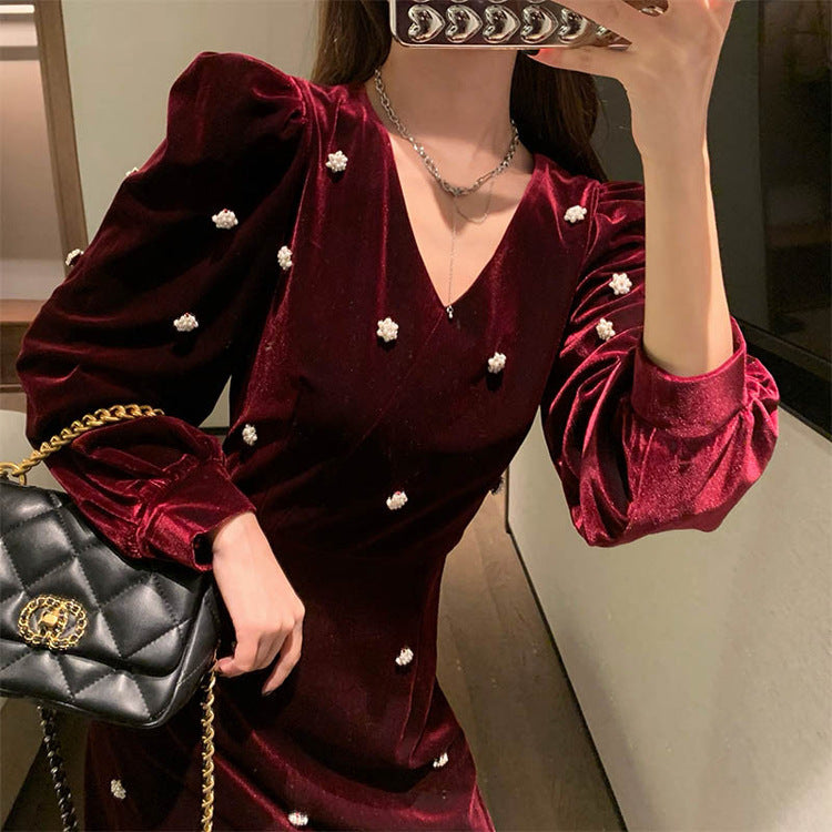 Maxi Burgundy Dress Formal Red, Long Skirt Dress Women's Autumn and Winter Long Dress