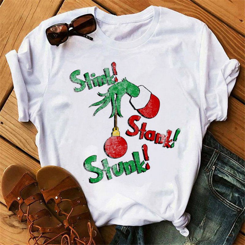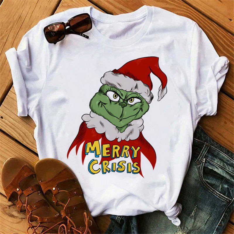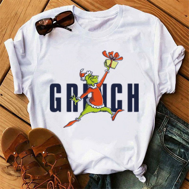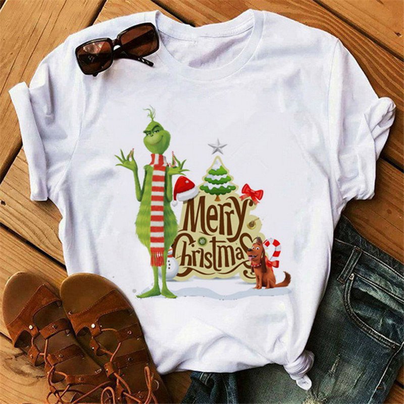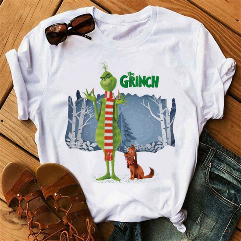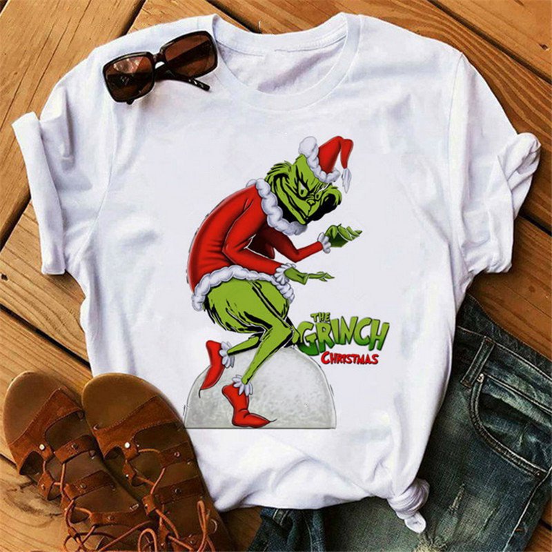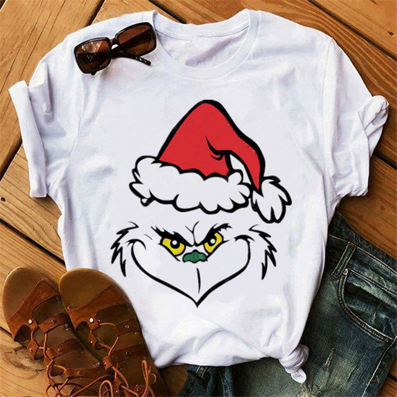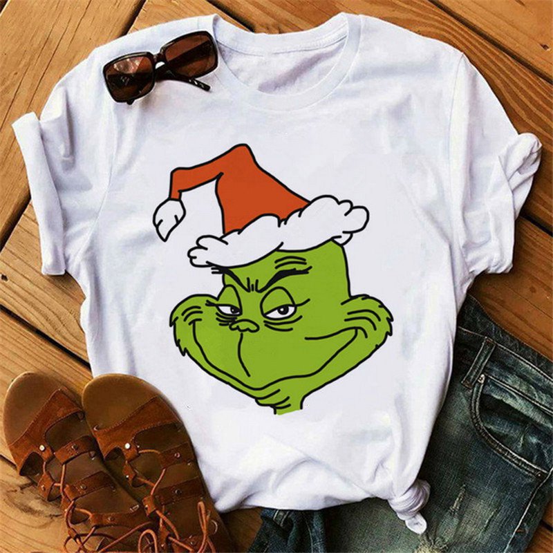Men and Women Grinch Shirt Christmas Loose Grinch Printed Short Sleeve