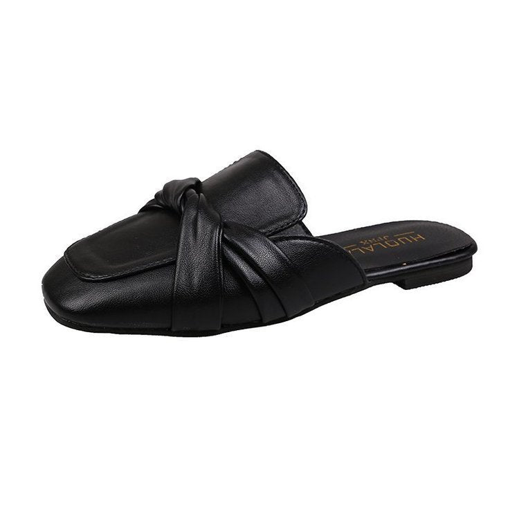 Finn Chain Pointed Toe Mule Closed Toe Half Slippers Women's Summer Outdoor Casual Square Toe Flat Bottom Lazy Half Slippers