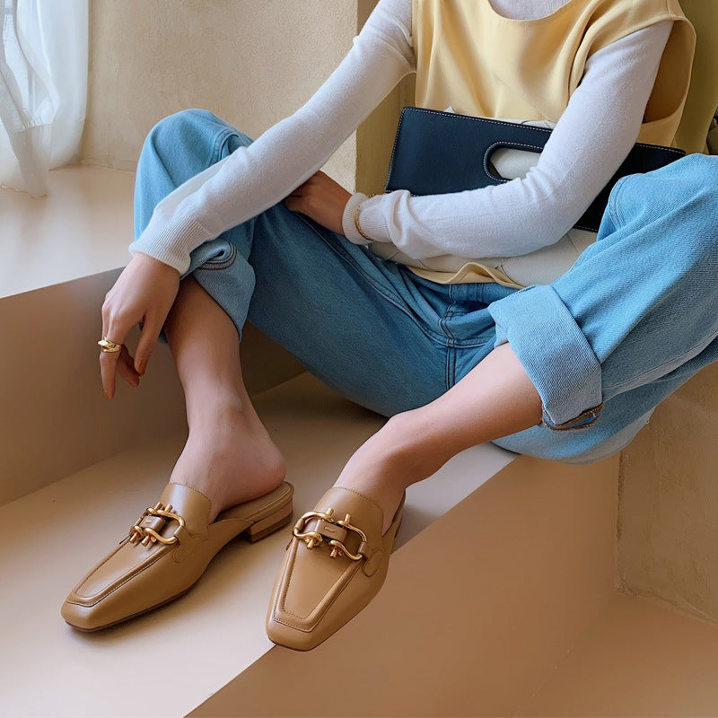 Finn Chain Pointed Toe Mule Slippers Women's Toe Cap Half Slippers Spring Sandals Outer Wear Lazy Slippers
