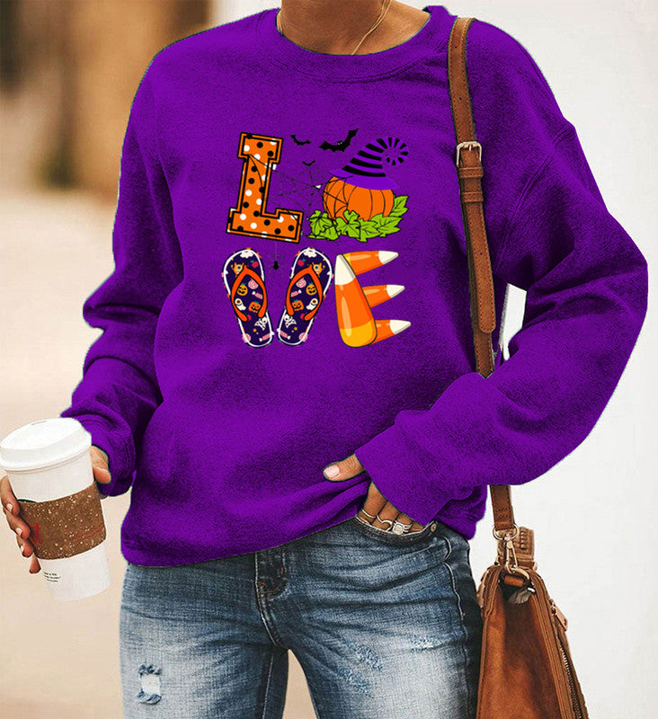 Halloween Costumes Printing Long Sleeve Crew Neck Sweater Women