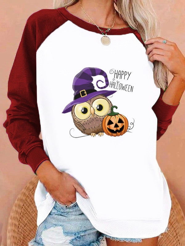 Halloween Costumes Printing Capless round Neck Contrast Color Sweatshirt Women