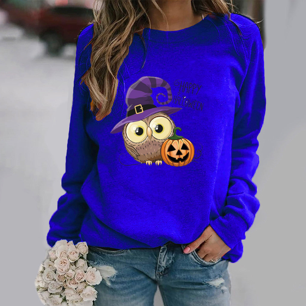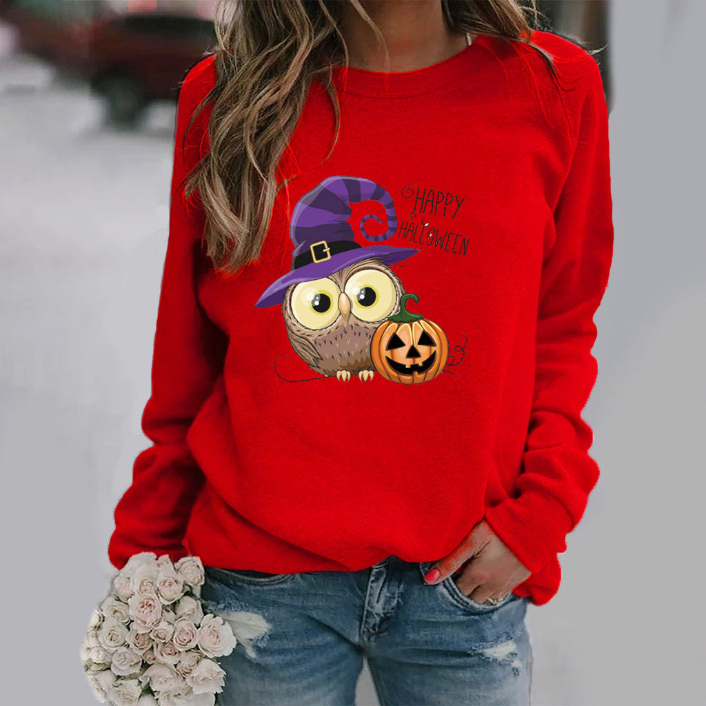 Halloween Costumes Pattern Printing Long Sleeve Crew Neck Sweater Female
